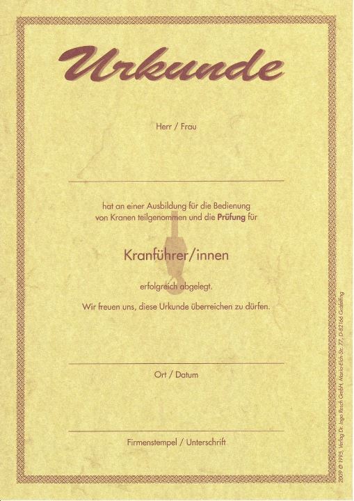 Krantypen durch eine weitere Prüfung zusätzlich zu erwerben. Sprechen Sie uns bei Interesse gerne darauf an. Neben der erstmaligen Schulung sind von der Berufsgenossenschaft für alle Kranführer